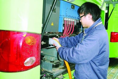 工作人員在給電動公交車充電