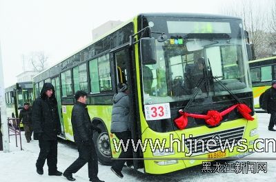 哈爾濱市公共汽車總公司公交33路車隊(duì),從遼寧丹東引進(jìn)了40輛最新型智能加長(zhǎng)公交車,25日投入營(yíng)運(yùn)。