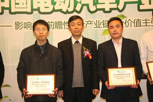 2010年12月28日,2010中國(guó)電動(dòng)車全產(chǎn)業(yè)評(píng)選結(jié)果在北京民族飯店揭曉,中通客車獲得了兩項(xiàng)大獎(jiǎng):企業(yè)獎(jiǎng)——年度優(yōu)秀電動(dòng)汽車企業(yè),產(chǎn)品獎(jiǎng)——LCK6128EV純電動(dòng)客車獲得“2010年年度純電動(dòng)客車”。作為全場(chǎng)為數(shù)不多的兩次上臺(tái)領(lǐng)獎(jiǎng)的嘉賓,中通客車企管部副部長(zhǎng)李篤生并沒有喜出望外,“中通電動(dòng)客車今天的獲獎(jiǎng)來自于兩方面的不懈努力:技術(shù)創(chuàng)新和市場(chǎng)推廣?!?/P>