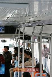 不少9路公交車乘客發(fā)現(xiàn),9路公交車內(nèi)有新變化:車頂棚上多出了10個(gè)滅火噴頭,還帶著一個(gè)大滅火罐。昨日,9路公交線路上的36輛公交車全部替換成了防火型公交車,目前9路車是成都市唯一一條全線更換為防火型公交車的線路。
