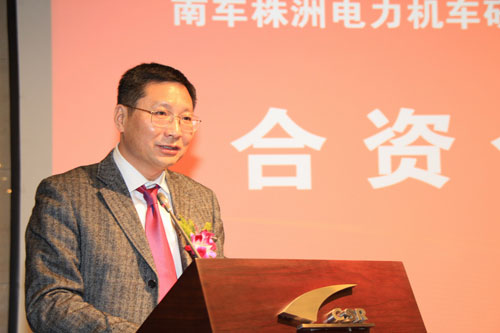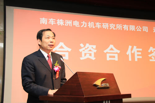 中國南車株洲所總經(jīng)理丁榮軍在簽約儀式上致辭