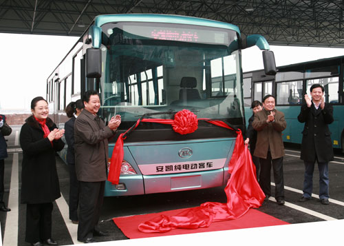 黃海嵩副省長(前排左二)為安凱純電動公交車成功運營揭幕