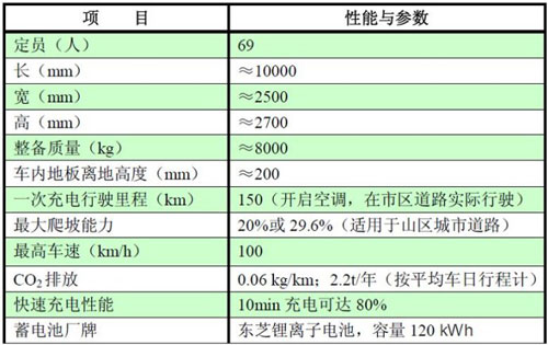 日本8輪驅(qū)動(dòng)電動(dòng)公交汽車的整車基本性能與參數(shù)表