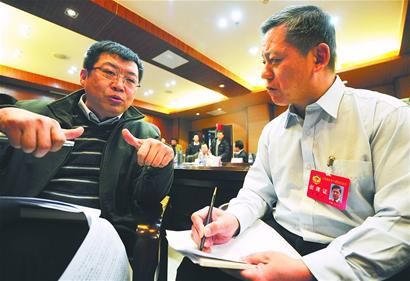 政協(xié)委員宋傳杰(右)與濟(jì)南市相關(guān)部門負(fù)責(zé)人進(jìn)行面對(duì)面交流