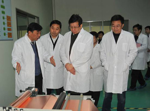 趙副廳長一行參觀了中大新能源汽車研究所,了解了電池生產(chǎn)線上的攪拌、化成、涂布、焊接等工藝,并詢問了中大純電動客車的產(chǎn)能、電池的材料構(gòu)成以及政府對新能源客車產(chǎn)業(yè)的相關(guān)扶持政策。