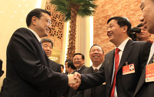 3月2日下午,中共中央政治局常委李長春,中共中央政治局常委、國務(wù)院副總理李克強分別來到北京河南大廈,親切看望出席十一屆全國人大四次會議的河南代表團代表。
