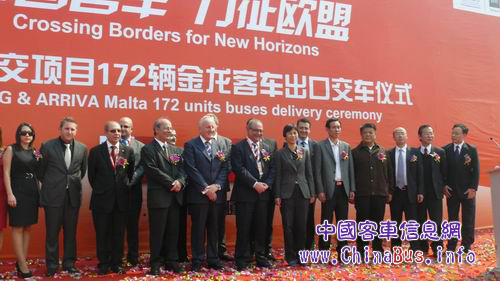 2011年4月2日,172輛金龍客車在廈門現(xiàn)代碼頭正式交付歐洲頂級(jí)運(yùn)輸服務(wù)集團(tuán)ARRIVA旗下的馬耳他公司,這批車輛全部搭載歐V排放發(fā)動(dòng)機(jī)并配備全球領(lǐng)先的車載信息管理系統(tǒng),訂單總價(jià)值超過1500萬歐元,全部車輛將于7月投入馬耳他公交線路運(yùn)營(yíng),有望徹底改變馬耳他公交系統(tǒng)經(jīng)營(yíng)分散、污染嚴(yán)重的局面。大金龍馬耳他公交項(xiàng)目,不僅是鼓舞中國(guó)客車邁向國(guó)際高端市場(chǎng)的一個(gè)榜樣,也為中國(guó)自主品牌汽車開拓歐盟市場(chǎng)提供了可供借鑒的范本。