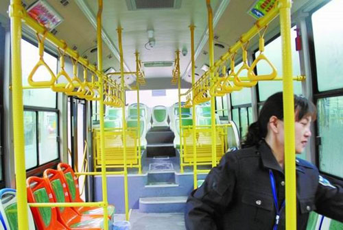 電動公交車車廂內顯得很寬敞