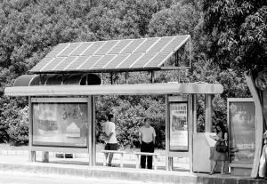在紅荔路關(guān)山月美術(shù)館公交站臺,一座新型的綠色太陽能供電的公交站臺剛剛落成。