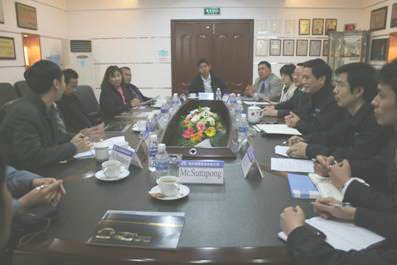 總經(jīng)理羅邦初(右三)陪同外國(guó)客人來(lái)廠考察和座談