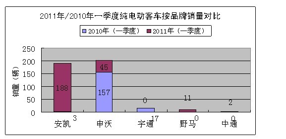 2011年第一季度,電動車盡管與混合動力相比,增長幅度稍有遜色,但與一季度全國汽車工業(yè)平均增長速度來看,還是十分令人注目的。