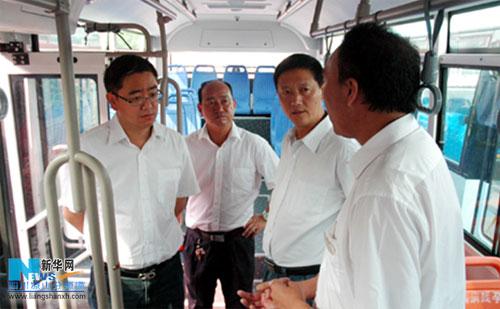李俊市長等走進(jìn)新型公交內(nèi)體驗(yàn)舒適性