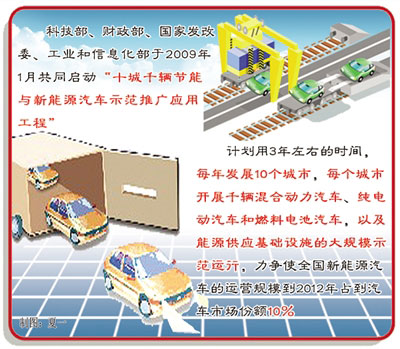 和濟(jì)南市一樣,全國(guó)有20多個(gè)城市在進(jìn)行節(jié)能與新能源汽車示范推廣運(yùn)行。為進(jìn)一步推動(dòng)新能源汽車的產(chǎn)業(yè)化進(jìn)程,在更大范圍推廣應(yīng)用新能源汽車,科技部、財(cái)政部、國(guó)家發(fā)改委、工業(yè)和信息化部于2009年1月共同啟動(dòng)了“十城千輛節(jié)能與新能源汽車示范推廣應(yīng)用工程”。