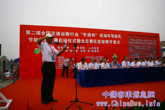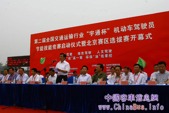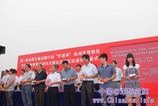 2011年8月31日,第二屆全國(guó)交通運(yùn)輸行業(yè)“宇通杯”機(jī)動(dòng)車(chē)駕駛員節(jié)能技能大賽開(kāi)幕式在北京順義奧林匹克水上公園前廣場(chǎng)盛大舉行。主辦方交通運(yùn)輸部副部長(zhǎng)馮正霖、總工程師周海濤、全國(guó)總工會(huì)紀(jì)檢組長(zhǎng)書(shū)記處書(shū)記王瑞生、中國(guó)海員建設(shè)工會(huì)副主席朱臨慶、北京市政府副秘書(shū)長(zhǎng)周正宇、福建省交通廳領(lǐng)導(dǎo)、交通運(yùn)輸部各司局領(lǐng)導(dǎo)以及各活動(dòng)參與省市交通廳、運(yùn)管局領(lǐng)導(dǎo)出席開(kāi)幕式,協(xié)辦方鄭州宇通客車(chē)股份有限公司相關(guān)人員、首屆“宇通杯”獲獎(jiǎng)代表和眾多媒體記者也出席了現(xiàn)場(chǎng)。