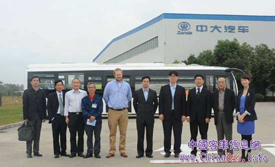 10月20日,日本三菱扶桑海外銷售本部亞洲部部長田中康博、中國香港區(qū)域經(jīng)理Brett Rumble、生產(chǎn)本部部長小川拓野一行在江蘇悅達(dá)集團(tuán)副總裁符貴興等陪同下來到中大,考察了中大新能源客車。