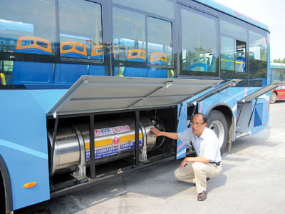 市公共汽車總公司總工程師江仁成介紹LNG公交車氣罐設(shè)置及工作原理
