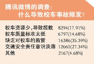 校車應該如何監(jiān)管?對此,廣州市公安交警支隊的相關人士告訴記者:作為交通管理部門,交警有責任與教育部門共同監(jiān)管校車。一直以來,在校車的準入標準、噴涂的標識方面都有統(tǒng)一規(guī)定。具體到司機和車輛的日常管理,則由各自學校負責聘請、管理和維護。交警部門一直以來對上路校車的管理一視同仁,如在路上發(fā)生違章、超載等行為,會嚴格執(zhí)罰。該人士認為,對于校車的管理,必須要從源頭開始,抓好司機的素質、車輛的車況,并且樹立嚴格的監(jiān)管制度,堅決杜絕超載、闖紅燈、超速等違章行為,在實際日常管理中,不同部門和單位應共同協(xié)助,嚴格監(jiān)管。