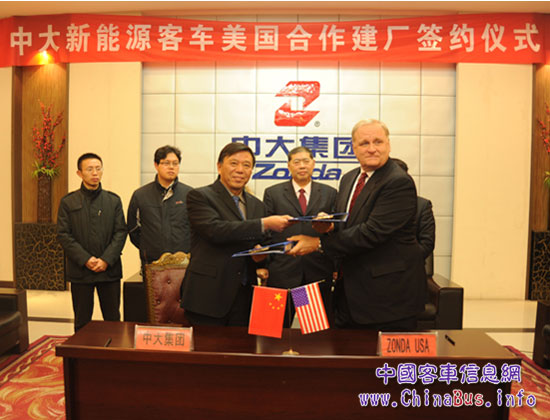 12月9日,中大集團(tuán)與Zonda USA就合作生產(chǎn)新能源客車(chē)以及開(kāi)拓美國(guó)客車(chē)市場(chǎng)等事宜簽訂戰(zhàn)略合作協(xié)議。中大集團(tuán)副總裁馬憲與Zonda USA總裁約瑟夫•帕克分別代表雙方簽字。中大集團(tuán)董事長(zhǎng)徐連國(guó)出席。該協(xié)議的簽訂對(duì)于提升中大客車(chē)的海外市場(chǎng)競(jìng)爭(zhēng)力,增加中大客車(chē)海外市場(chǎng)占有率具有重要的意義。