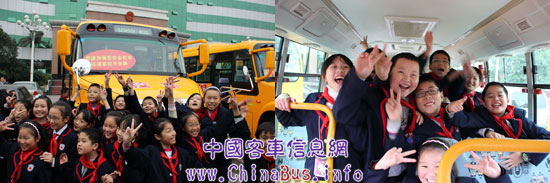 重慶市渝北區(qū)金港國(guó)際實(shí)驗(yàn)小學(xué)的孩子們登上“金剛校車”激動(dòng)不已