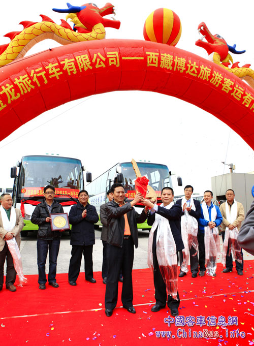 彩旗飄飄、鑼鼓喧揚、哈達飛舞…… 你一定以為這是在西藏的某個地方舉行的某種活動吧?其實不然,這是12月11日在廈門金旅海滄工廠門前舉行的廈門金旅——西藏博達旅游客運公司(以下簡稱博達公司)的交接車儀式。來自西藏拉薩運管局書記·常務副局長黃康渝、西藏博達旅游客運有限公司多布吉董事長、索朗次仁總經(jīng)理以及廈門金旅葉宇亮副總經(jīng)理、金旅銷售公司閻志勇副總經(jīng)理等領導出席了儀式。