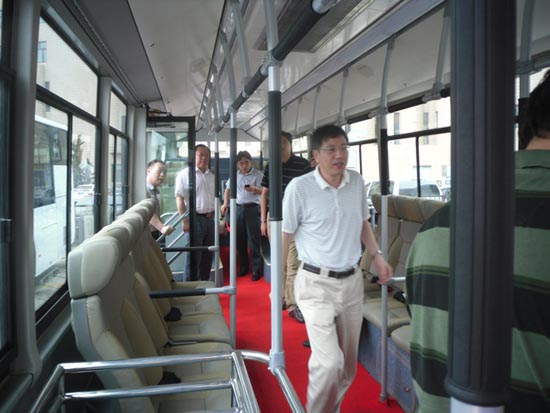 劉國強(qiáng)副總經(jīng)理引領(lǐng)各位領(lǐng)導(dǎo)參觀樣車