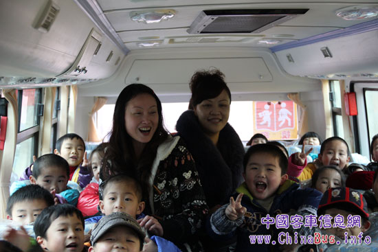 孩子們登上恒通新校車,高興不已