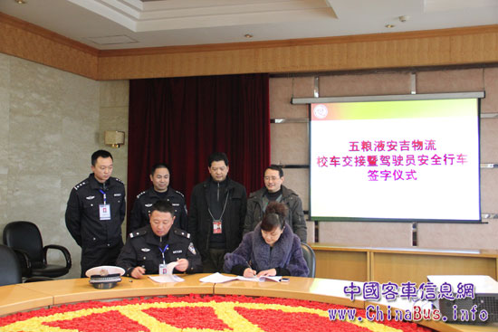 2012年1月9日,舉世聞名的“酒都”宜賓五糧液工業(yè)園區(qū)內,濃濃冬意擋不住彌漫在空氣里宜人的酒香,更擋不住人們的熱情和孩子們燦爛的笑容,五糧液集團購買的首批恒通加強型安全校車交車剪彩儀式在這里隆重舉行,五糧液安吉物流集團劉總、宜賓市交警支隊陳隊長、宣傳科肖科長、安吉物流安全監(jiān)督部何部長、運輸部王部長、五糧液幼兒園彭園長等領導為新校車剪彩、宜賓市各大報刊、電視臺、五糧液幼兒園幼兒方隊、恒通客車代表參加了活動,并見證了駕駛員安全行車簽字儀式。