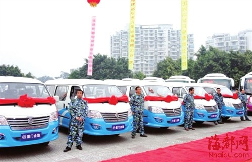 2011年12月27日,廈門金龍旅行車福安交車儀式暨福安市首批農(nóng)村客運(yùn)新車投放儀式在福安市舉行。隨著城鄉(xiāng)人民生活水平的提高以及政府大力開展“村村通”工程,福安政府為方便城鄉(xiāng)農(nóng)民乘車需求,經(jīng)過對(duì)比、考察,購(gòu)買了首批廈門金旅海獅客車作為福安市新開的10路公交線和延伸的6路公交線以及松羅等6個(gè)鄉(xiāng)鎮(zhèn)內(nèi)農(nóng)村客運(yùn)循環(huán)班線的新車。