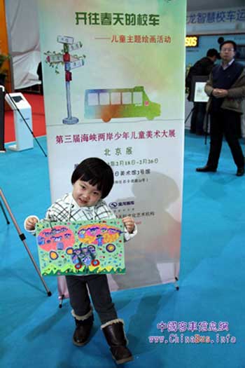 作為中國(guó)領(lǐng)先的客車制造企業(yè),2月15日,“2012首屆中國(guó)校車發(fā)展研討會(huì)暨國(guó)際校車展覽會(huì)”,大金龍剛剛正式發(fā)布搭載“智慧校車運(yùn)營(yíng)管理系統(tǒng)”和先進(jìn)主被動(dòng)安全技術(shù)的全系“智慧校車”,為中國(guó)學(xué)童的出行提供全面、完善的安全防護(hù),引起新聞媒體和社會(huì)各界的高度關(guān)注。在當(dāng)天的展示活動(dòng)中,包括來(lái)自北京某幼兒園的6名小朋友,還在現(xiàn)場(chǎng)進(jìn)行了“開往春天的校車”兒童繪畫,用畫筆描繪出自己心目中的安全校車,并把他們的畫作向記者們展示,成為展會(huì)現(xiàn)場(chǎng)最溫馨、最感人的畫面。