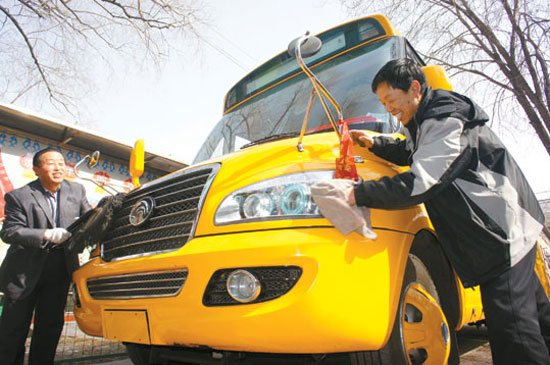 2月27日,對于西寧市城北區(qū)小天使幼兒園來說是一個(gè)喜慶的日子,幼兒園迎來“新成員”——一輛嶄新的“大鼻子”校車。這種新式校車借鑒美式校車設(shè)計(jì),整車可載37名乘客,車內(nèi)安全系統(tǒng)一應(yīng)俱全。據(jù)介紹,小天使幼兒園是西寧市首家引進(jìn)新型校車的民辦幼兒園。