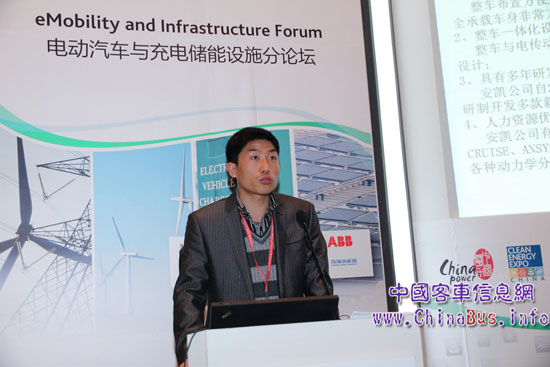 安凱新能源汽車(chē)研究所的王少凱工程師在大會(huì)論壇上發(fā)言