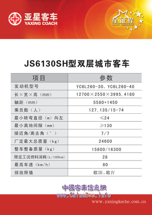 亞星:JS6130SH系列雙層旅游觀光城市客車