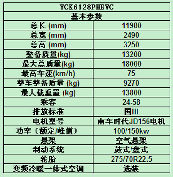 中大:YCK6128PHEVC純電動客車