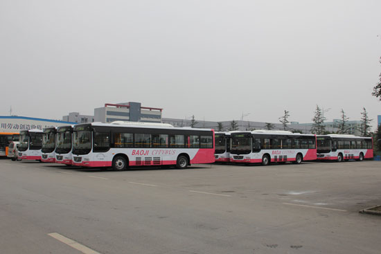 2012年3月23日,寶雞市公共交通有限公司通過公開招標(biāo),向恒通客車訂購的40輛前置12米普通燃?xì)獯罂蛙嚕?5輛前置11米空調(diào)燃?xì)獯罂蛙囌较戮€,65輛燃?xì)饪蛙囋诤阃üI(yè)園內(nèi)整裝待發(fā),即將交付寶雞公交。