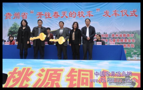 4月6日,貴州省“開往春天的校車”發(fā)車儀式在銅仁市圓滿舉辦,活動主辦方貴州省婦聯(lián)、貴州省教育廳、貴州婦女兒童基金會以及承辦單位銅仁市婦聯(lián)的相關領導出席儀式。在交車儀式上,由捐贈方鄭州宇通客車股份有限公司提供的兩輛校車,交予銅仁市兩所縣級小學使用。
