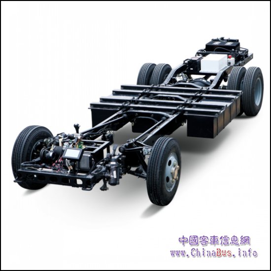 在江淮客車底盤展臺上,一款面向高端商旅市場的寶斯通純電動底盤充分體現(xiàn)了江淮客車底盤在技術(shù)研發(fā)和新能源方面的實力。該底盤采用后置直驅(qū),電機直接連接驅(qū)動橋,實現(xiàn)無級變速,加速性能優(yōu)異。動力單元來自80KW的永磁同步驅(qū)動模塊,效率高于常見的三相異步電機,但重量只有后者的一半。電池部分來自120個鋰電池串聯(lián)組成的384V能量儲備模塊,電池單體容量達120Ah,保證車輛以60公里等速行駛時連續(xù)行駛160km。該車可改裝成7m純電動高檔商務(wù)客車底盤,真正實現(xiàn)尾氣的零排放。