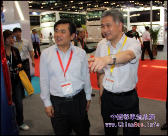 5月17日上午,交通運輸部副部長馮正霖蒞臨2012年“北京國際道路運輸、城市公交車輛及零部件展覽會”現(xiàn)場,在金龍汽車集團董事長、大金龍董事長谷濤的陪同下視察了大金龍展臺,參觀大金龍全新推出的新一代科技客車XMQ6125AY,并詳細了解大金龍車載電腦信息系統(tǒng)在有效提高車輛安全性能、杜絕駕駛員超速和疲勞駕駛方面的先進功能。