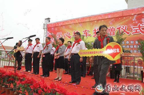 5月11日上午,一次愛心校車捐贈(zèng)儀式在遷安野雞坨完小舉行。遷安市政府、遷安市教育局,團(tuán)市委、市婦聯(lián)等部門及捐贈(zèng)校車的兩位企業(yè)家參加了這次捐贈(zèng)儀式。
