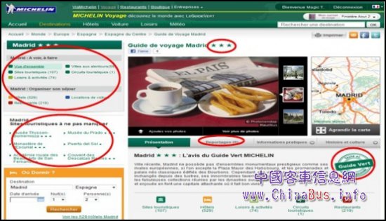 米其林旅游網(wǎng)站(voyage.viamichelin.fr)包含了米其林旅游指南(又稱“綠色指南”)系列的所有內(nèi)容,并且經(jīng)過(guò)特別的數(shù)字化平臺(tái)處理,幫助用戶制定個(gè)性化的度假方案。無(wú)論是通過(guò)瀏覽地圖或是點(diǎn)擊最熱門旅游勝地,用戶均可以輕松地選擇度假目的地,了解“值得一看”的旅游景點(diǎn),制定旅游行程和度假計(jì)劃,選擇最具性價(jià)比的賓館,預(yù)定家庭活動(dòng)。