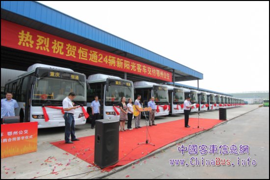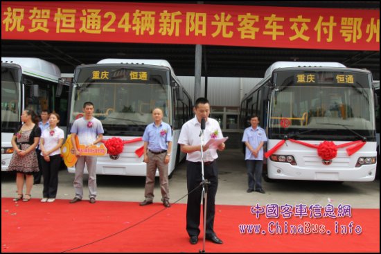 7月18日上午,“鄂州公交/ 恒通24輛新陽光客車交付儀式”在恒通客車工業(yè)園內(nèi)隆重舉行。儀式上, 恒通客車黨委副書記兼副總經(jīng)理蔣更新發(fā)表了致辭,并向鄂州公交王吉安移交了恒通24輛新陽光客車的金鑰匙,隨后鄂州市公共汽車公司副總經(jīng)理王吉安作了精彩的發(fā)言,并與恒通客車銷售公司總經(jīng)理程文理簽訂了追加16臺新陽光客車的采購合同,這標(biāo)志著恒通客車將再次服務(wù)鄂州公共交通,為鄂州公交事業(yè)的發(fā)展增光添彩。