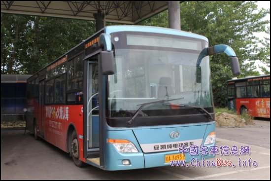 合肥公交集團(tuán)經(jīng)濟(jì)區(qū)停保場內(nèi)整齊排放的安凱純電動公交車