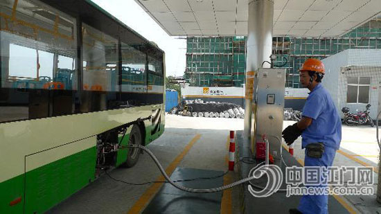 26日,一輛綠色的公交車開入新會(huì)汽車總站內(nèi)的LNG(液化天然氣)加氣站,從停好車到加滿氣離開,約摸5分鐘時(shí)間。記者從江門新會(huì)華潤(rùn)燃?xì)庥邢薰精@悉,位于新會(huì)汽車總站的LNG加氣站近日正式投入營(yíng)運(yùn),是新會(huì)首個(gè)LNG汽車加氣站,新會(huì)區(qū)約50輛LNG公交車可就近加氣。