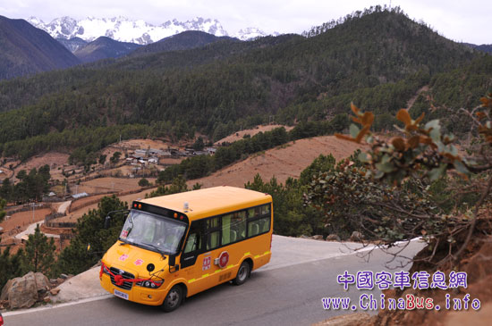 海格校車(chē)駛在盤(pán)山公路上