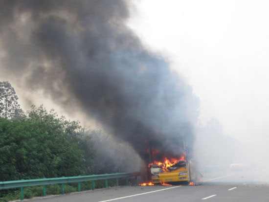 昨天(30日)下午4時許,一輛從江蘇發(fā)往深圳牌照為蘇HY08××的雙層臥鋪客車,在途經(jīng)合安高速廬江段時發(fā)生火災。雖然當時大多乘客都在睡夢中,但由于司機處理及時,車上乘客被快速疏散,12名司乘人員無人受傷。