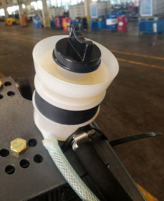油壺是客車(chē)上最常見(jiàn)的部件,制動(dòng)液、助力油、防凍液等等液體都會(huì)用到。在一臺(tái)海格客車(chē)上記者卻發(fā)現(xiàn)離合器油壺在加注口的旁邊多了一道凹槽,原來(lái)這是為了防止加注離合器油時(shí)溢出的液體流到下面的管線(xiàn)上,造成著火隱患而做的特別改進(jìn)。