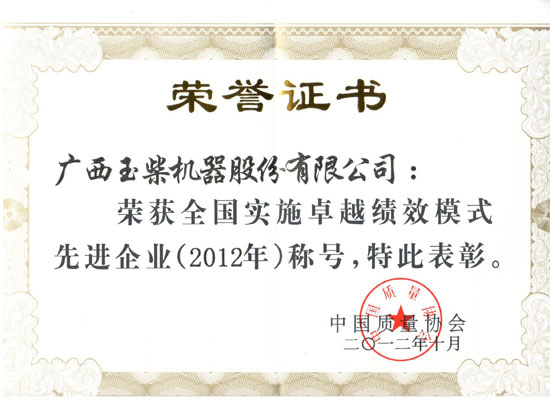 來自全國(guó)29個(gè)省、自治區(qū)、直轄市和特別行政區(qū)的企業(yè)參與申報(bào)“全國(guó)實(shí)施卓越績(jī)效模式先進(jìn)企業(yè)”獎(jiǎng)項(xiàng)。玉柴作為機(jī)械行業(yè)為數(shù)不多的發(fā)動(dòng)機(jī)專業(yè)生產(chǎn)企業(yè),多年來一直致力于卓越績(jī)效模式的實(shí)施。尤其是今年以來,在廣西自治區(qū)主席質(zhì)量獎(jiǎng)、玉林市市長(zhǎng)質(zhì)量獎(jiǎng)等評(píng)選中,作為廣西率先導(dǎo)入卓越績(jī)效模式的企業(yè),玉柴在競(jìng)爭(zhēng)中占盡先機(jī),成為行業(yè)標(biāo)桿。自2004年以來,玉柴已經(jīng)多次獲評(píng)為全國(guó)實(shí)施卓越績(jī)效模式先進(jìn)企業(yè)。