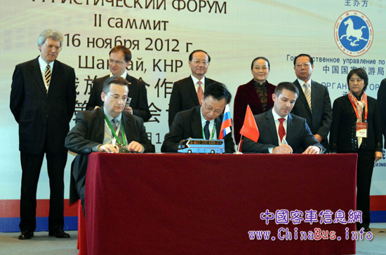 作為中國"俄羅斯旅游年"的一項主要活動,中俄旅游合作論壇第二次會議11月16日在上海舉行,會議期間,在國家旅游局局長邵琪偉、上海市副市長趙雯、俄羅斯聯(lián)邦文化部部長梅津斯基等領(lǐng)導(dǎo)的見證下,國內(nèi)知名的客車制造企業(yè)廈門大金龍與俄羅斯最大的旅游運輸公司--維特運輸公司及當?shù)亟?jīng)銷商歐亞運輸公司簽訂戰(zhàn)略合作協(xié)議,三方將強強聯(lián)手,在俄羅斯交通運輸和旅游基礎(chǔ)設(shè)施領(lǐng)域開展互助合作,共同拓展當?shù)芈糜慰蛙囀袌觥?/P>