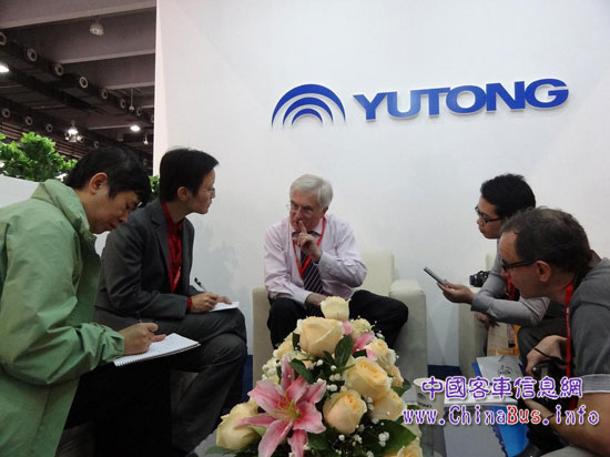最后,宇通客車不負眾望,拿下了“年度最佳客車制造商獎”、“2012年最佳校車制造商獎”、 “BAAV最佳校車管理系統(tǒng)獎”和“BAAV最佳校車安全獎”4項大獎。本屆車展,宇通不僅拿下了含金量最高的“年度最佳客車制造商獎”,還包攬了3項校車大獎,可謂是斬獲頗豐。為了表示對宇通客車所取得的成就的肯定,世界客車聯(lián)盟創(chuàng)始人盧克先生也忍不住走到宇通展臺,與媒體們進行溝通和互動。