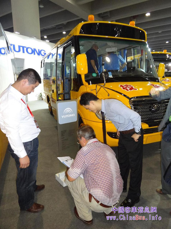 33日上午,最精彩的就是BAAV大獎頒獎典禮了,BAAV大獎號稱世界客車業(yè)的“奧斯卡”獎,不容錯過。為了捕捉最精彩的瞬間,記者在各大客車展臺進行蹲點,只見專家們拿著各種測評指標在不同的展臺前來回穿梭,詳細了解車型、技術和安全措施等。專家們對宇通校車也十分感興趣,不停地通過翻譯跟宇通技術人員進行溝通,了解相關的技術細節(jié)和操作體驗??磥怼按蟊亲有\嚒钡镊攘Υ_實很大,不僅吸引了普通人的目光,還引起了外國專家的普遍關注。
