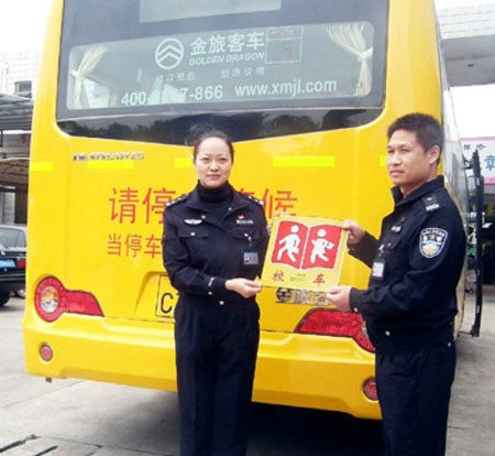 南寧車管所發(fā)放廣西首張校車標(biāo)牌